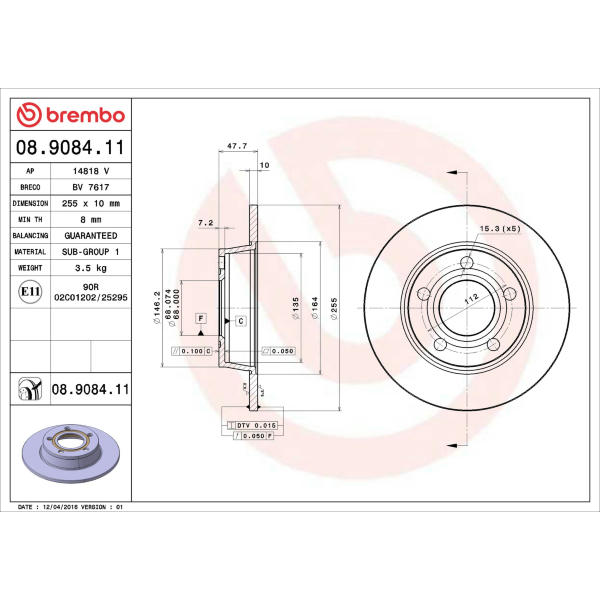 Brzdový kotouč BREMBO 08.9084.75
