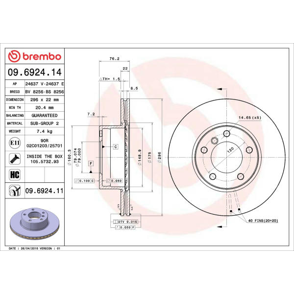 Brzdový kotouč BREMBO 09.6924.75