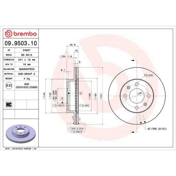 Brzdový kotouč FERODO DDF1268C