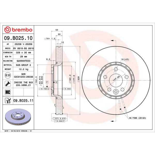Brzdový kotouč BREMBO 09.B025.11