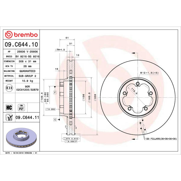Brzdový kotouč TEXTAR 92274303