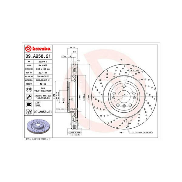 Brzdový kotouč BREMBO 09.A958.21