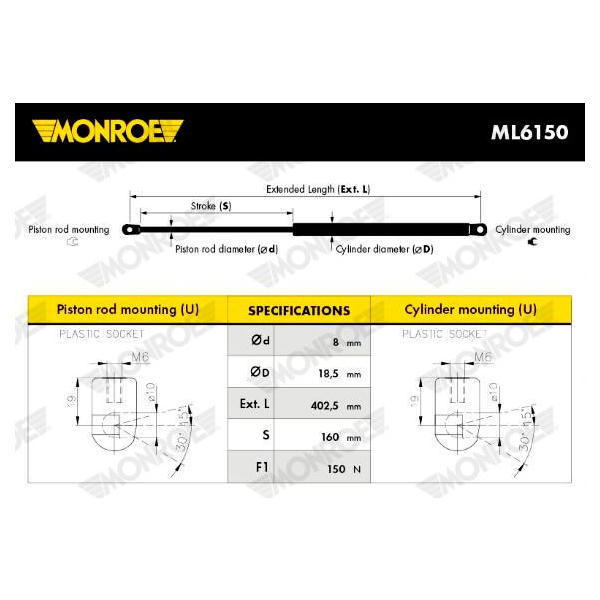Pneumatická pružina, zavazadlový / nákladový prostor MONROE ML6150