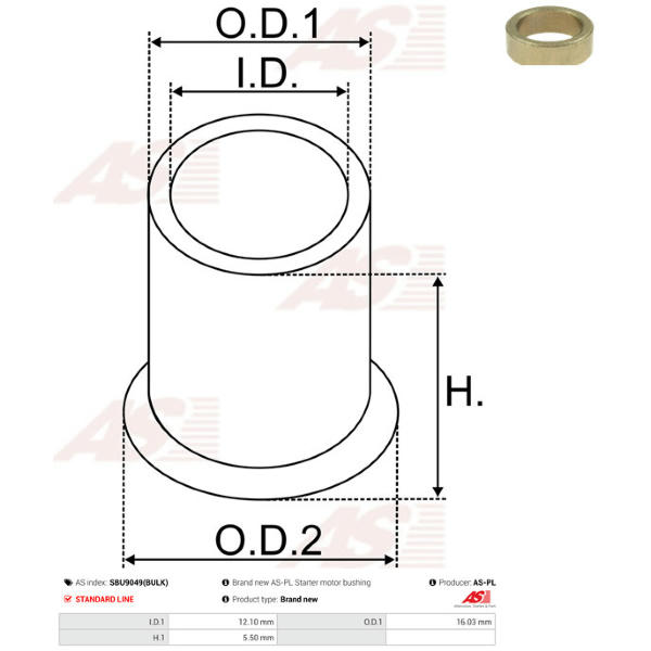 Pouzdro, hřídel startéru AS-PL SBU9049(BULK)