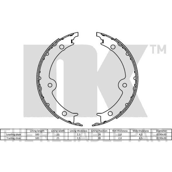 Sada brzdových čelistí, parkovací brzda NK 2745860
