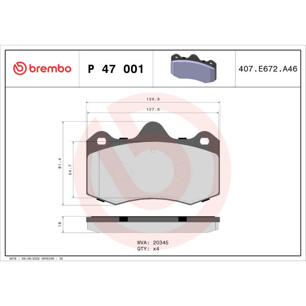 Sada brzdových destiček, kotoučová brzda BREMBO P 47 001