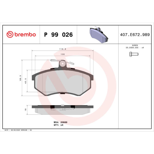 Sada brzdových destiček, kotoučová brzda BREMBO P 99 026