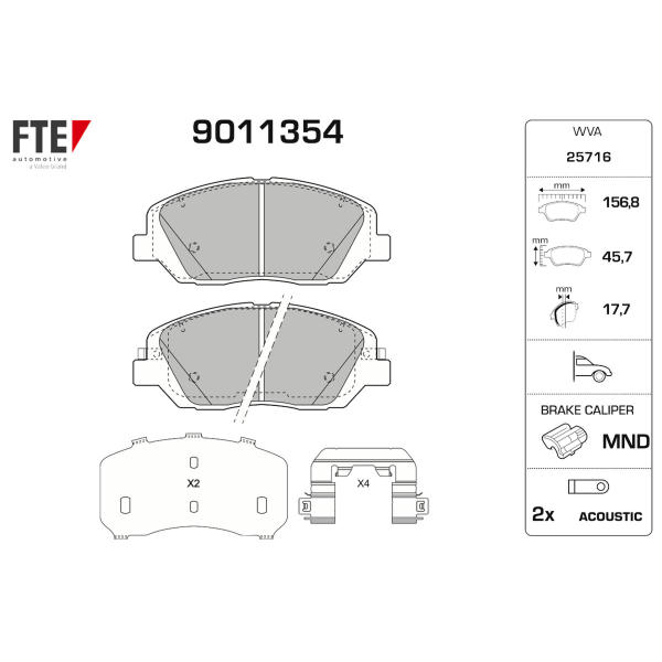 Sada brzdových destiček, kotoučová brzda FTE 9011354