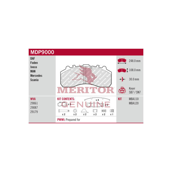 Sada brzdových destiček, kotoučová brzda MERITOR MDP9000