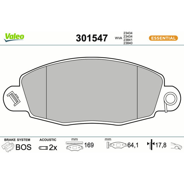 Sada brzdových destiček, kotoučová brzda VALEO 301547A