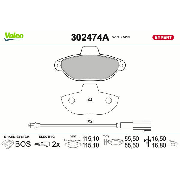 Sada brzdových destiček, kotoučová brzda VALEO 302474
